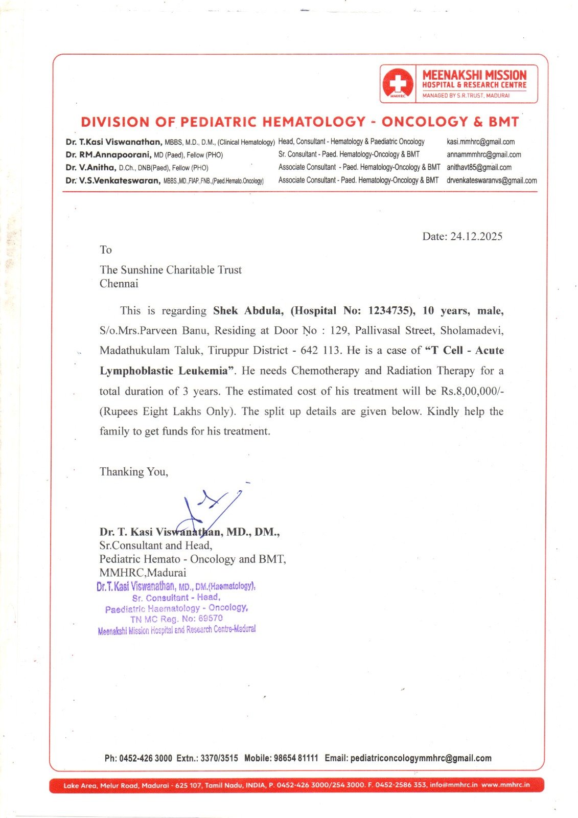 We humbly request kind-hearted donors and well-wishers to support Shek Abdula’s life-saving treatment.